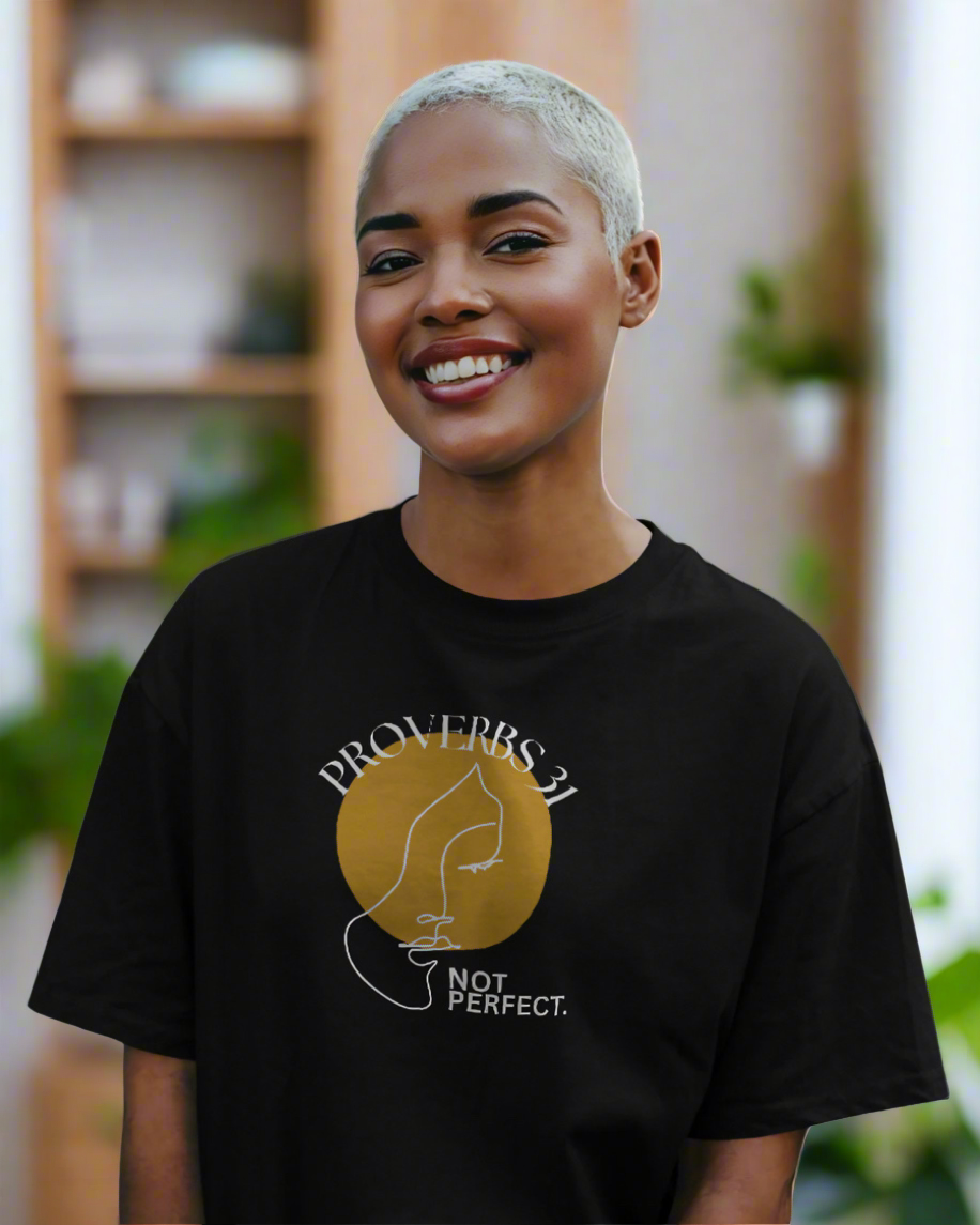 Women's Inspirational “Proverbs 31, Not Perfect” Graphic Jersey Short Sleeve Tee
